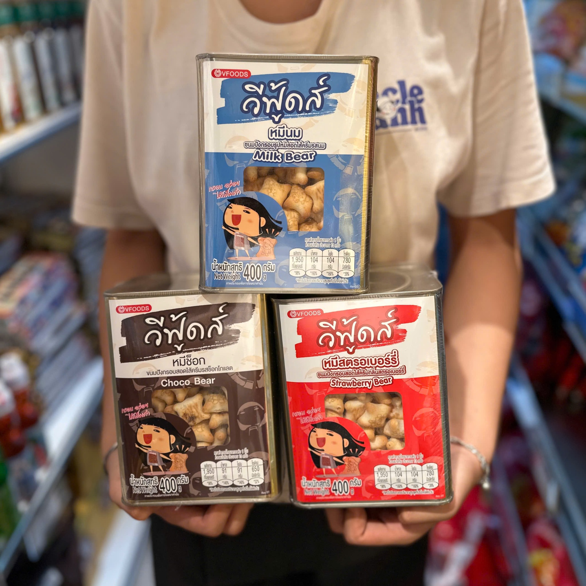 Bánh Gấu Nhân Kem Sữa Socola Hộp Thiếc Thái Lan vfood