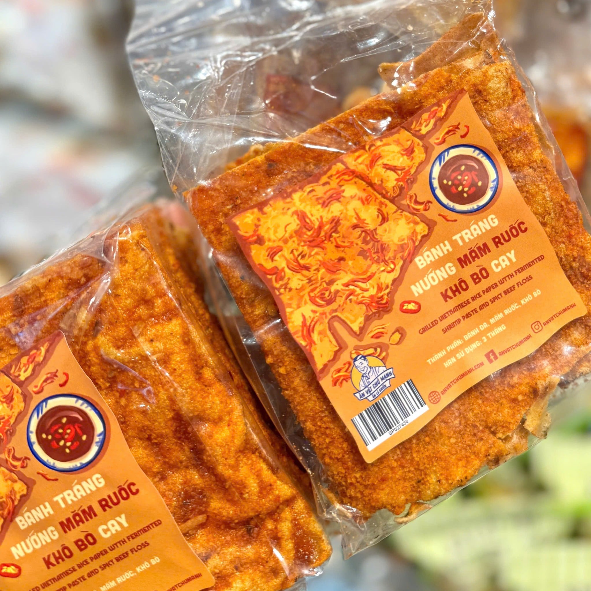Bánh tráng mắm ruốc khô bò giá 39.000đ / túi 10 miếng ăn là ghiềnnnnn.