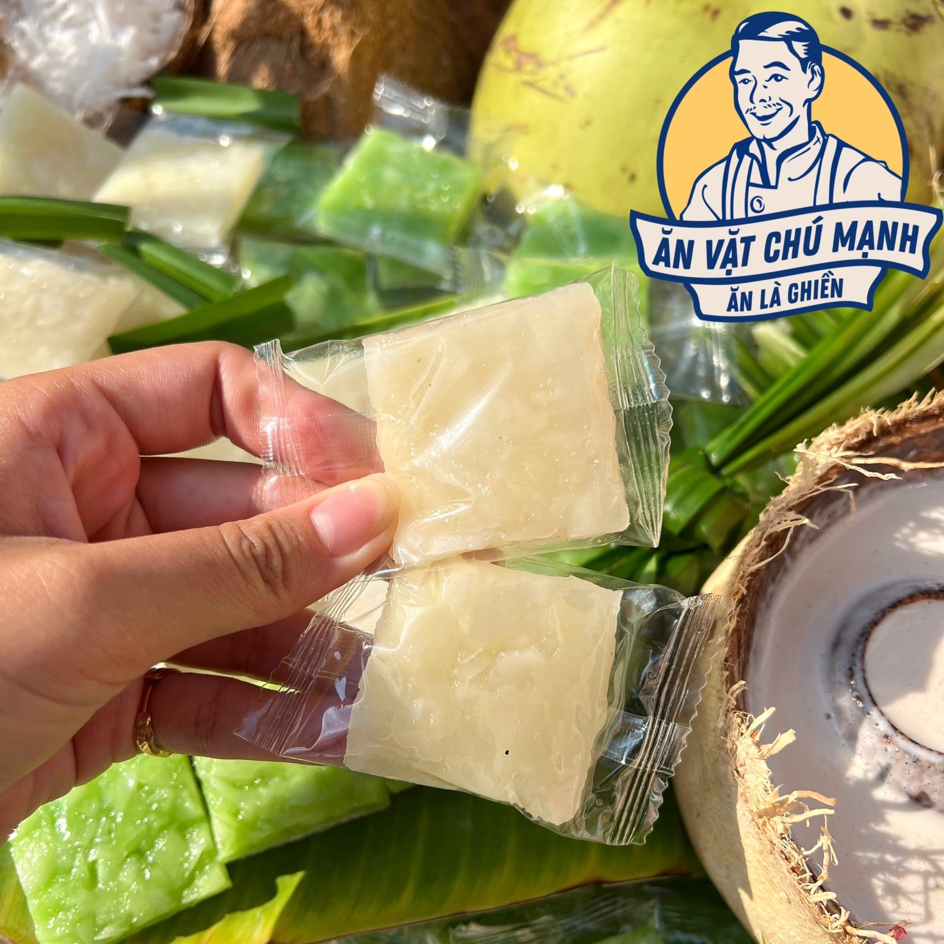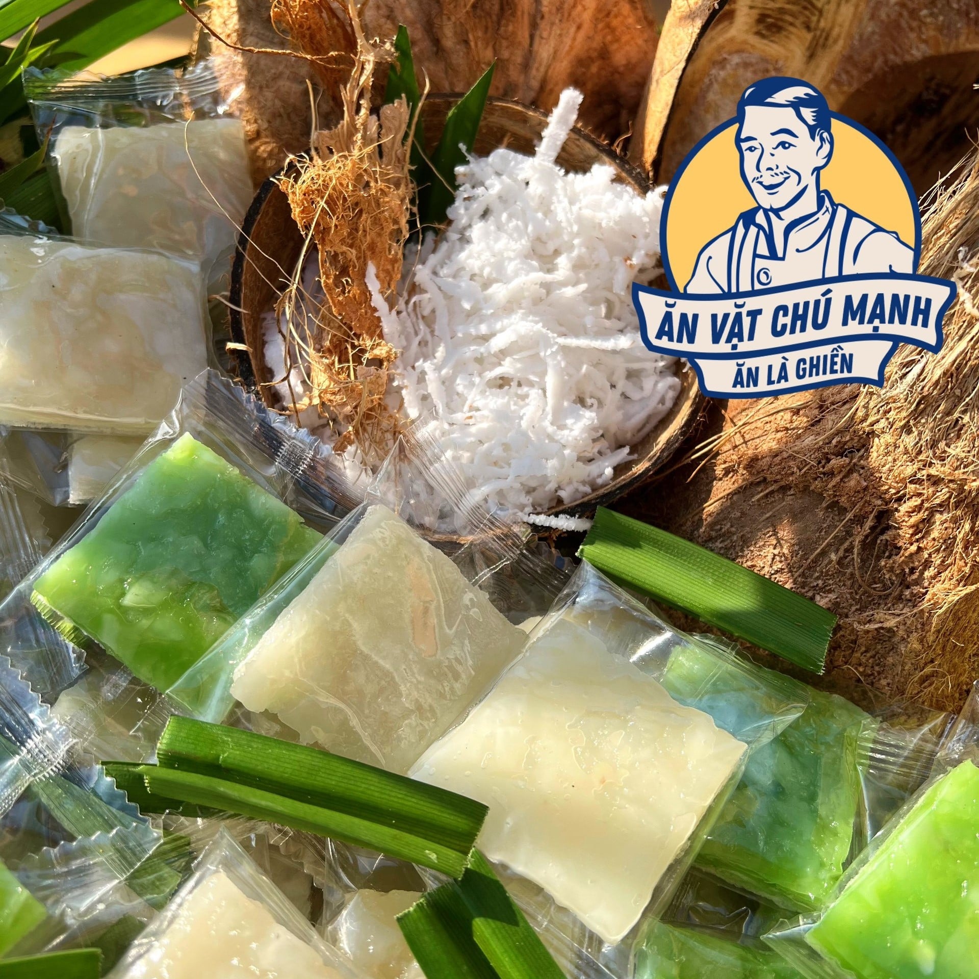 Được làm từ cốt dừa béo và sợi dừa non sần sật ép với bánh phồng nếp giòn. Kẹo dẻo nhưng không dính răng, lại ít ngọt. Là một biến tấu mới từ kẹo dừa truyền thống, không thể bỏ qua trong dịp Tết này ạ.