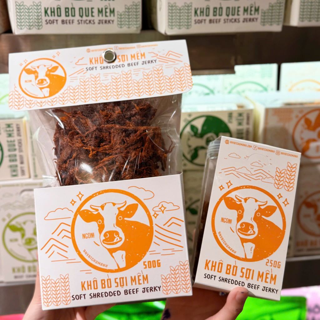 Sợi bò mềm dẻo chứ không quá dai cứng khô khan và nặng mùi gia vị.