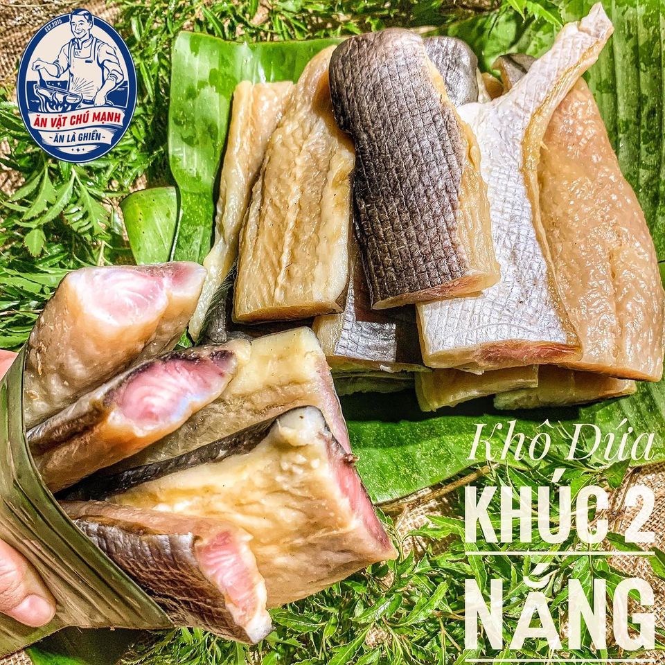 KHÔ CÁ DỨA KHÚC là dạng khô lạc 2 nắng không phải loại khô luôn nên phải bảo quản ngăn đông, khi dùng rã ra rửa sạch ráo chiên vàng giòn dằm chén mắm ớt chấm khô thơm da giòn thịt béo thì hao cơm lắm luôn.
