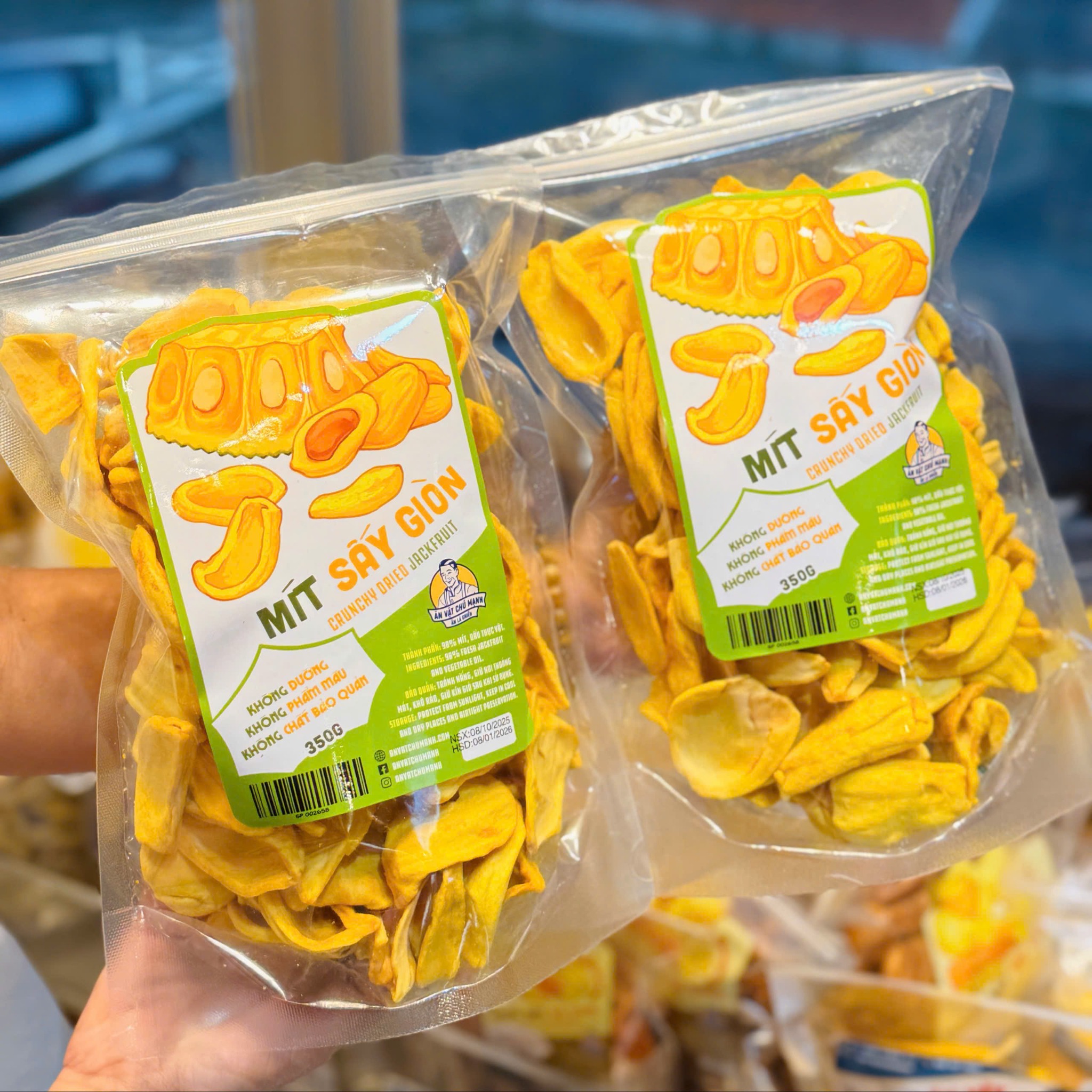 Mít có vị ngọt thanh tự nhiên, không đường giòn xốp nồng nàn mùi mít tươi có màu vàng tươi mít nghệ, múi không quá to không cứng gần như nguyên múi, sản phẩm hoàn toàn không sử dụng hóa chất và phụ gia thực phẩm.