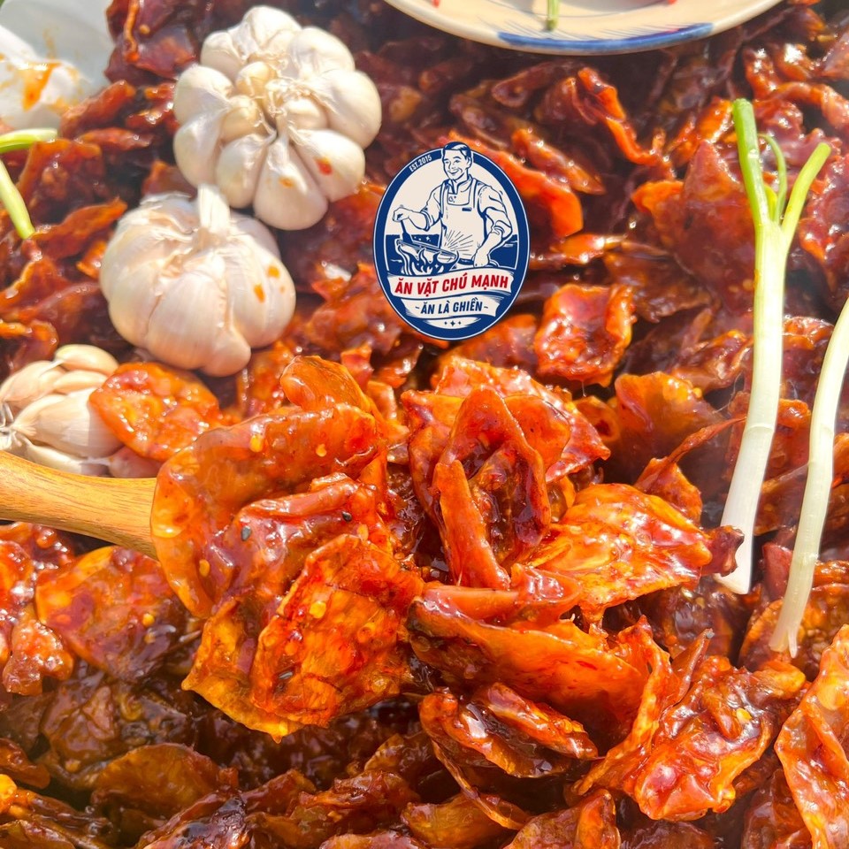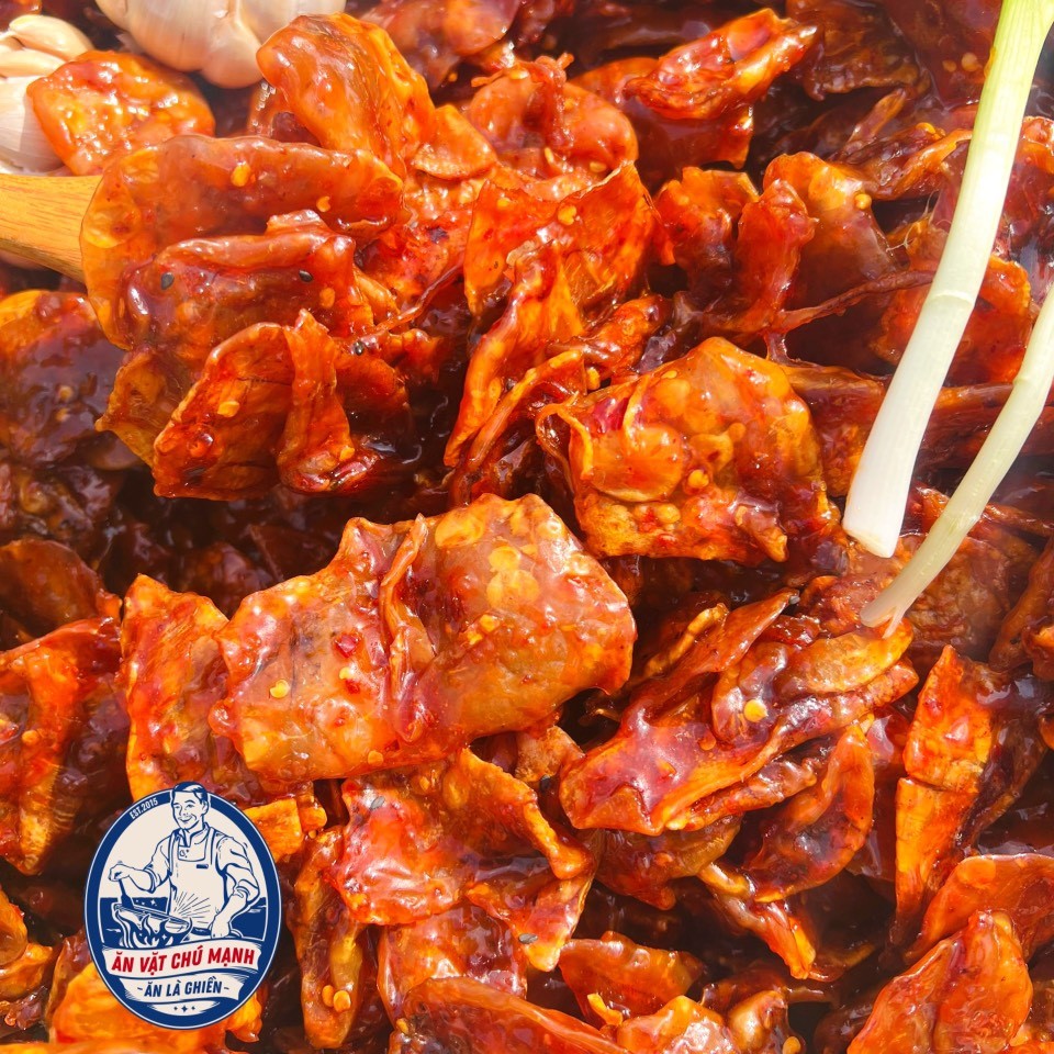 Mực rim sa tế được làm bằng mực nguyên con. Mực được tẩm ướp gia vị đậm đà, hòa quyện giữa vị ngọt của mực, sa tế và vị cay của ớt cho ra sản phẩm thơm ngon ăn là ghiền.