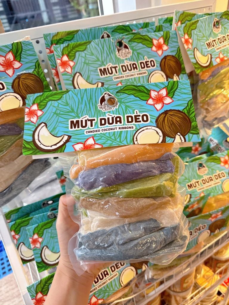 Mứt dừa Bếp không phải đều sợi tăm tắp mà làm từ dừa non dừa dẻo nên trong lúc chế biến sẽ dễ bị đứt, đặc biệt tự tin nhất là không có đều màu vì bếp không dùng tinh chất vị hay chất bảo quản.