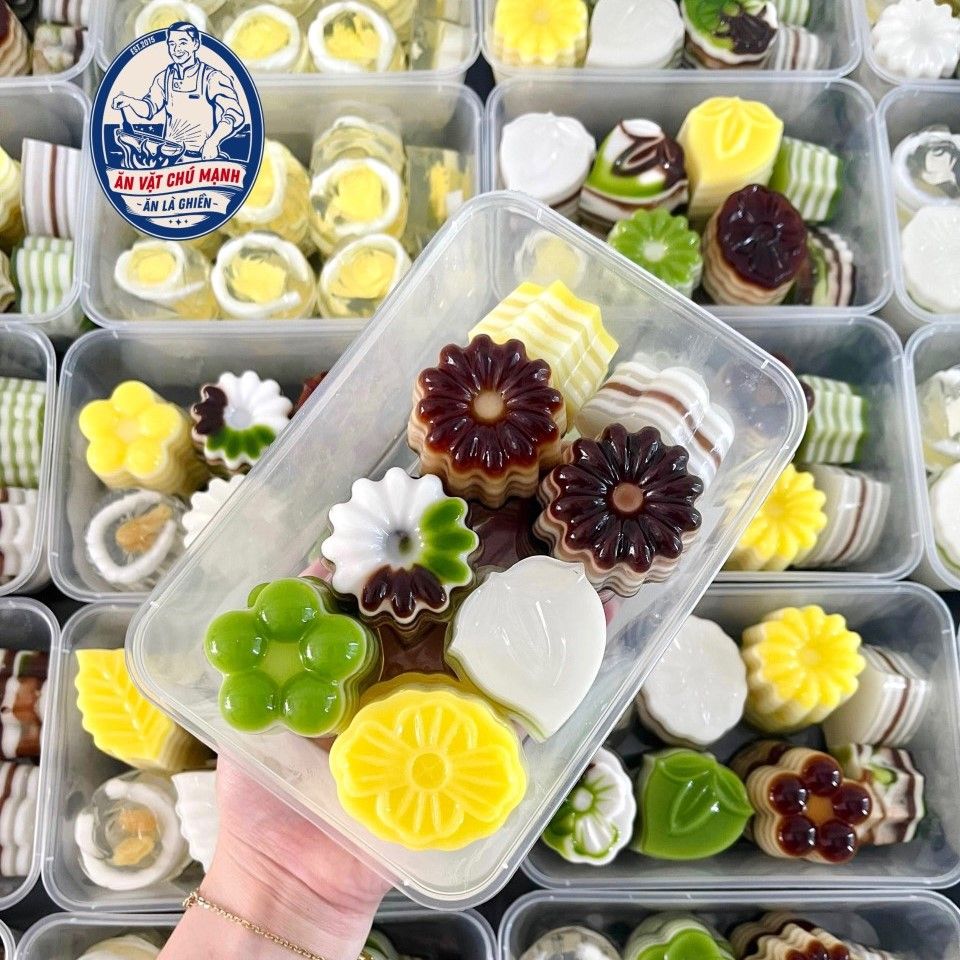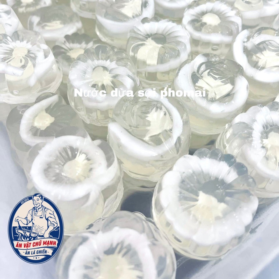 Rau câu sữa dừa lá dứa tươi nguyên chất 100% không phẩm màu, có mùi thơm dịu ngọt giòn thanh mát.