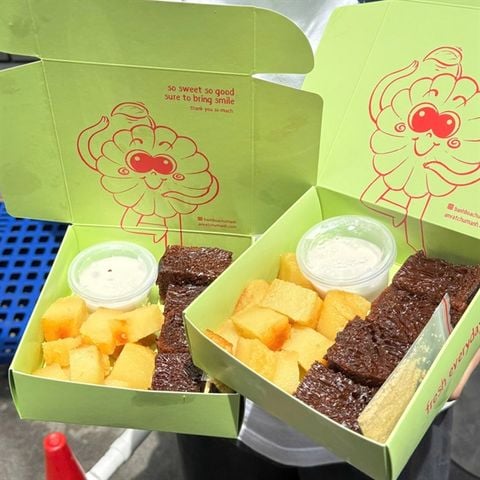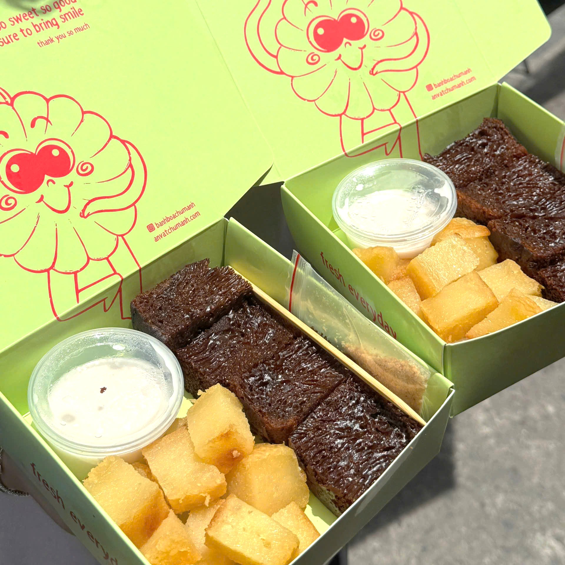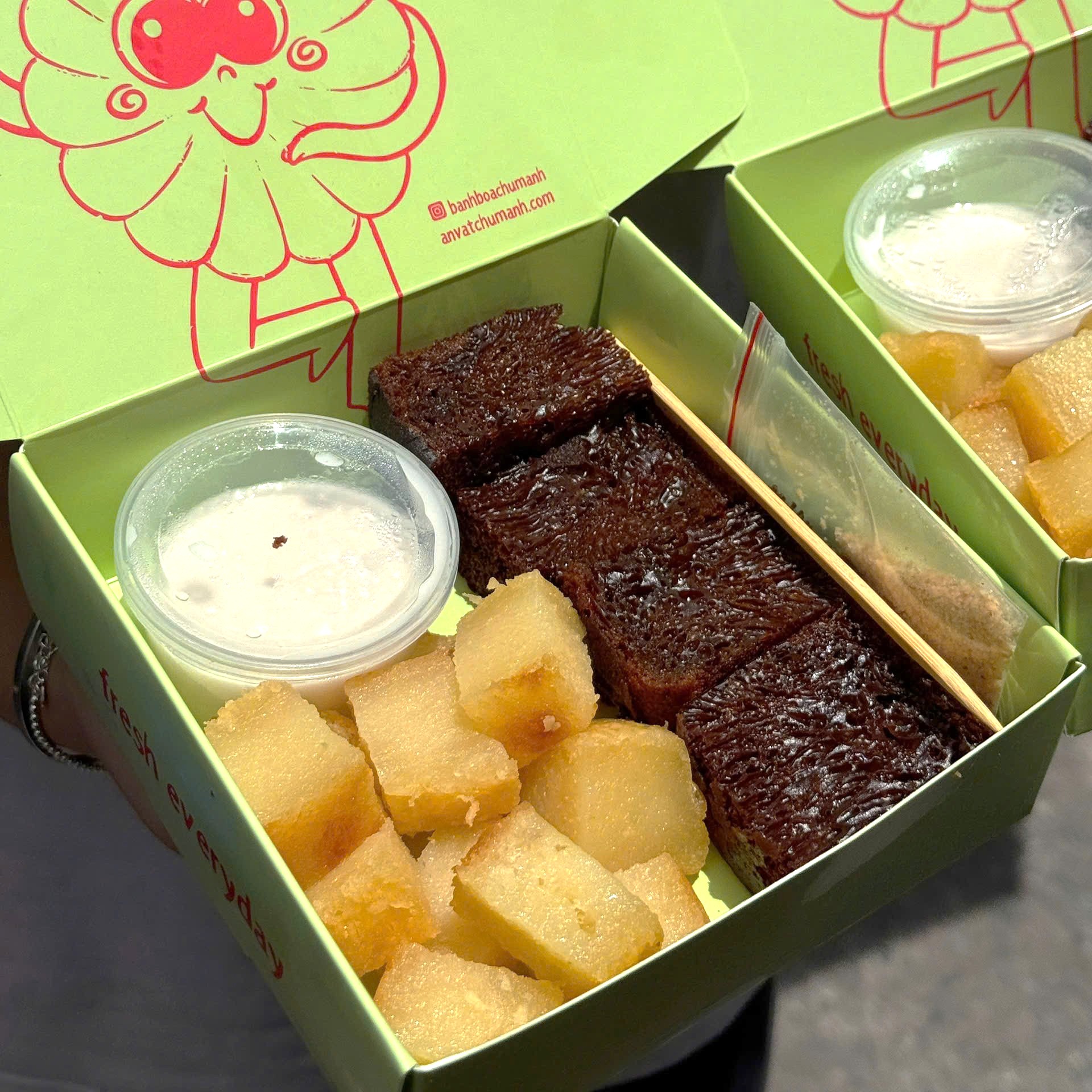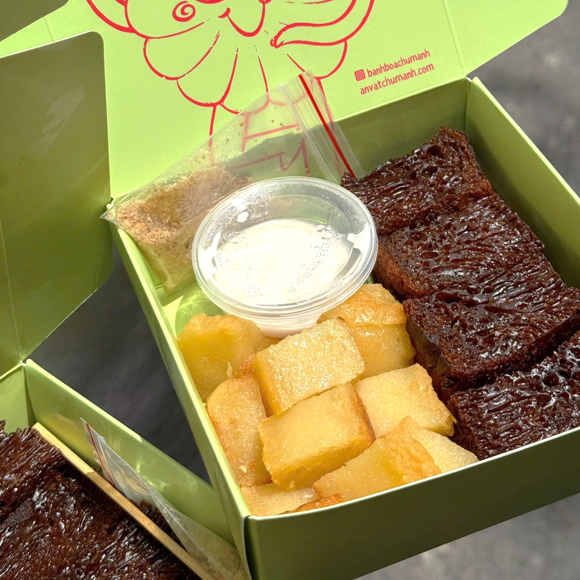🟢 Set khoai mì- bánh bò thốt nốt nướng giá 78.000đ/ hộp 450g kèm cốt dừa.