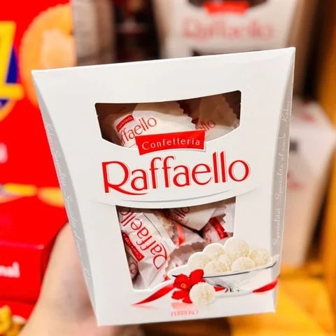 Kẹo Raffaello Socola bọc dừa là sự kết hợp độc đáo giữa socola trắng ở lớp trong và dừa ở lớp ngoài. Nó toát lên vị thơm ngọt của dừa. Hương vị của kem được trộn với hạnh nhân giòn cao khiến hương vị trở nên đặc biệt. Khi thưởng thức món kẹo này, bạn sẽ không quên được mùi dừa và lớp kem ngọt mát ấy.